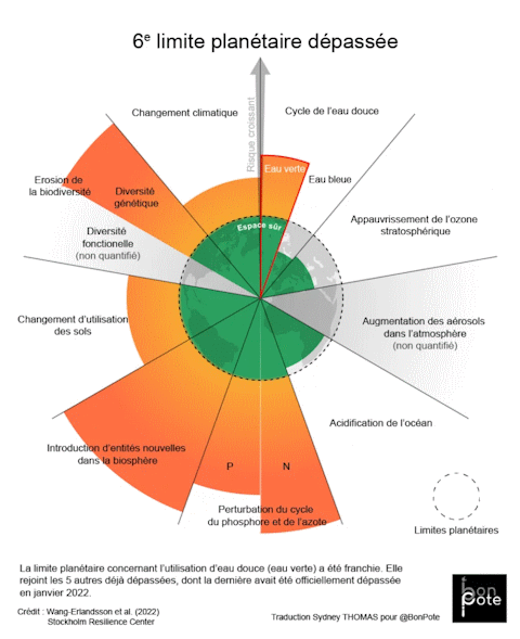 (A noter qu'une septième limite est en passe d'être également dépassée en 2024, l'acidification des océans)